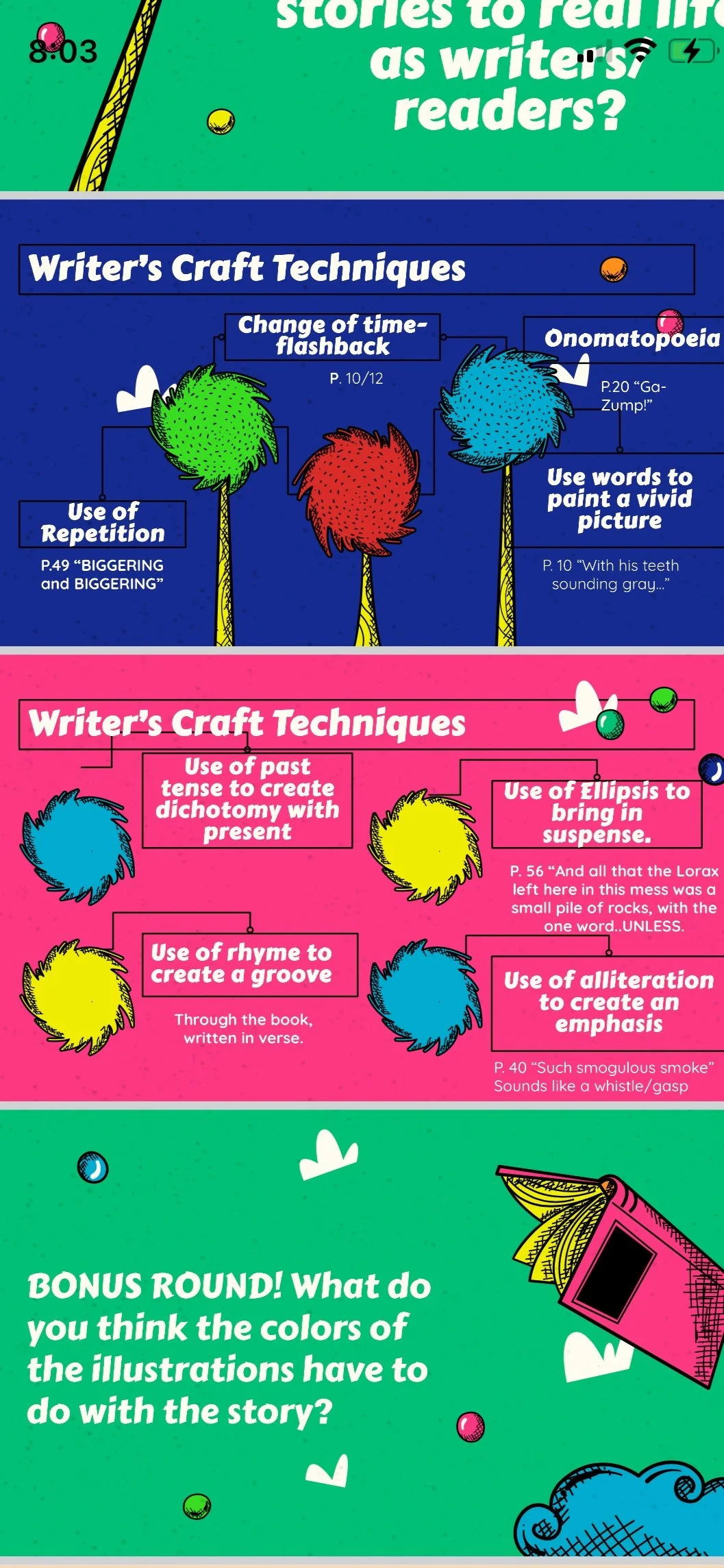 I had three of my placements at Scripps Middle School in the 6th Grade with English Language Arts teacher, Dana Abbasse. Dana is an inspiration to me, and was a wonderful mentor. The feedback that I received from Dana will stick with me for a lifetime. Dana is truly all about the students. She is dedicated, passionate, and really understands how to connect to the students on a personal level. Dana also teaches the Academic Literacy class for the 6th Grade ELA Team. She made that class fun and not a chore to the students. During my first placement, I observed the class and helped out with the editing and revision of essays. I taught one lesson using vocabulary and author’s craft utilizing Dr. Seuss’, “The Lorax”. I also hosted a class discussion on finding the theme of the story, and pushed the students to think deeper than what was on the page. This assignment was created and executed under direction of Dr. DiMeo at Oakland University. I also began to watch Dana’s lessons once or twice, whilst taking notes on the lesson, and I then attempted to teach the lesson on the spot for the next three hours. This was an important time fo my growth- as this gave me on-the-spot, valuable feedback from Dana. Due to my overzealous approach to the time spent in my second placement, I grew exponentially as a teacher during this time. I was ready to hold my own classroom. After this first Scripps Middle School placement, I taught the 54 days virtually!